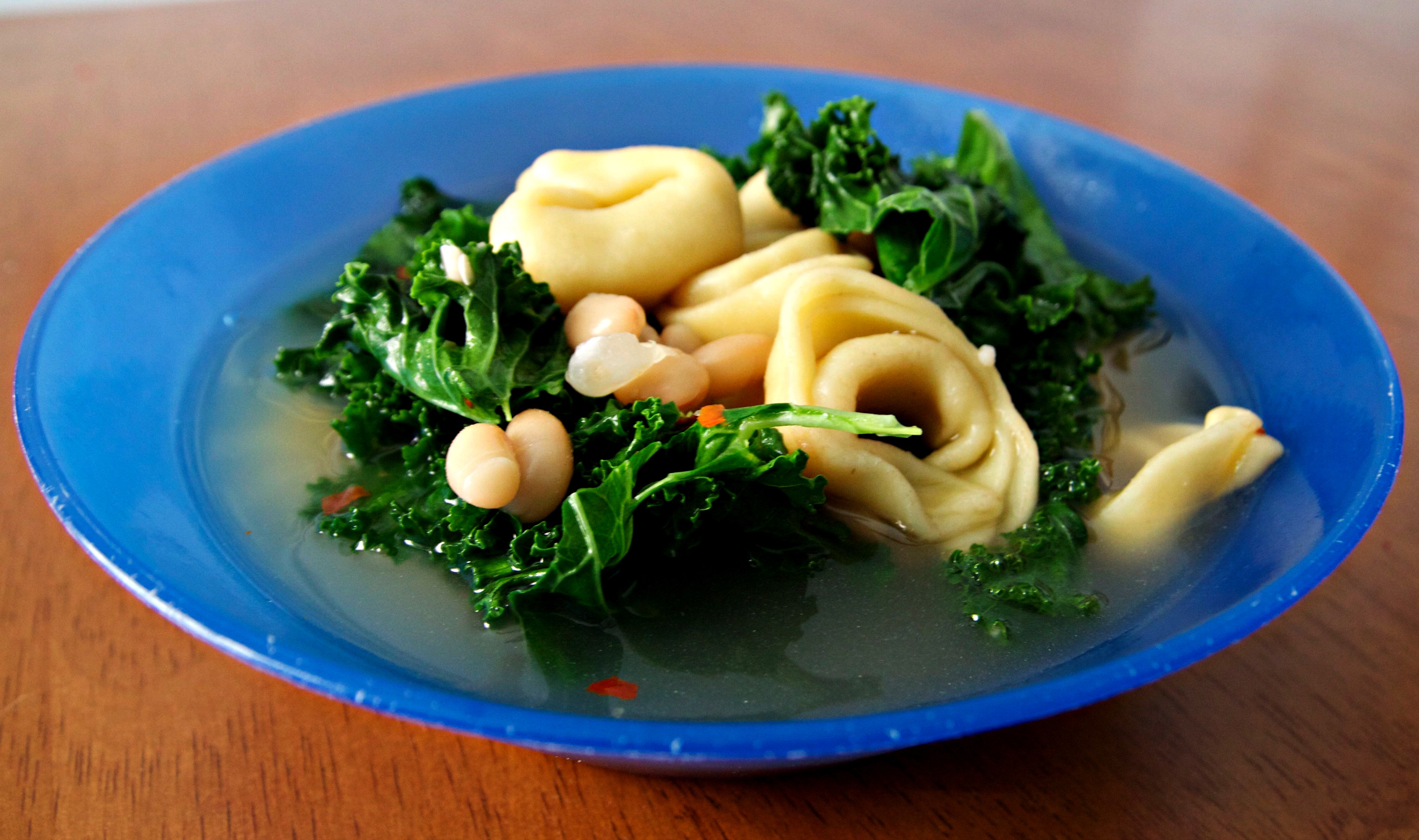 4. Heat the tablespoon of oil over medium-high heat. Add the onion and saute for 5 minutes. Add the kale, sauteing for another 5 minutes.