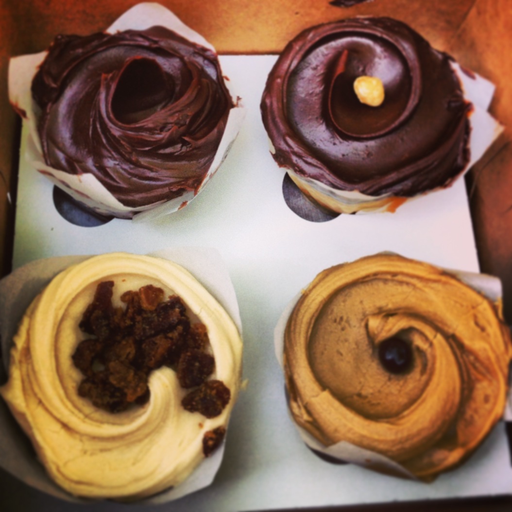 So now onto the good stuff – the food in D.C.! I didn’t have any set plans when it came to where I wanted to eat or what kind of food I wanted to try while there, except for one thing – Baked & Wired cupcakes! I had asked Krissy for some recommendations, and I remembered her stopping for birthday cupcakes there after the Cherry Blossom 10-miler a few weeks ago. While I’ve always wanted to try Georgetown Cupcakes, the thought of having to wait in a long line for cupcakes that I’ve heard are “just okay” wasn’t appealing. So I headed to Baked & Wired instead, and was thrilled with what I found. The storefront was small, but it was broken into two sections – one for cupcakes and desserts, another for coffee, tea, etc. I didn’t venture over to the coffee line, but from reading reviews online it seems like their coffee is just as good as their cupcakes. I should mention that they call them cake cups, which is appropriate since they are huge!